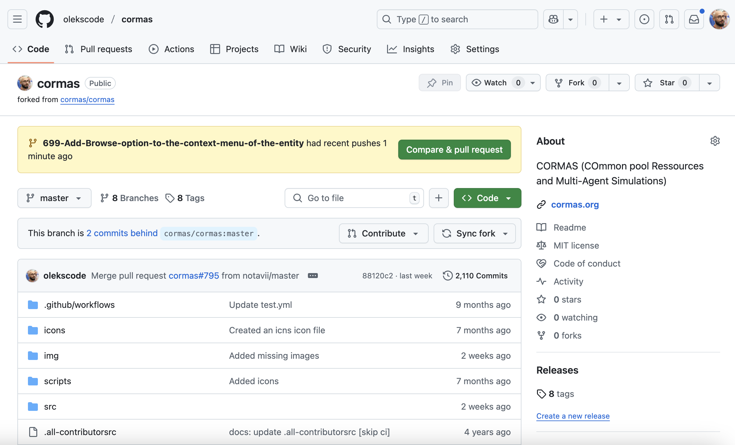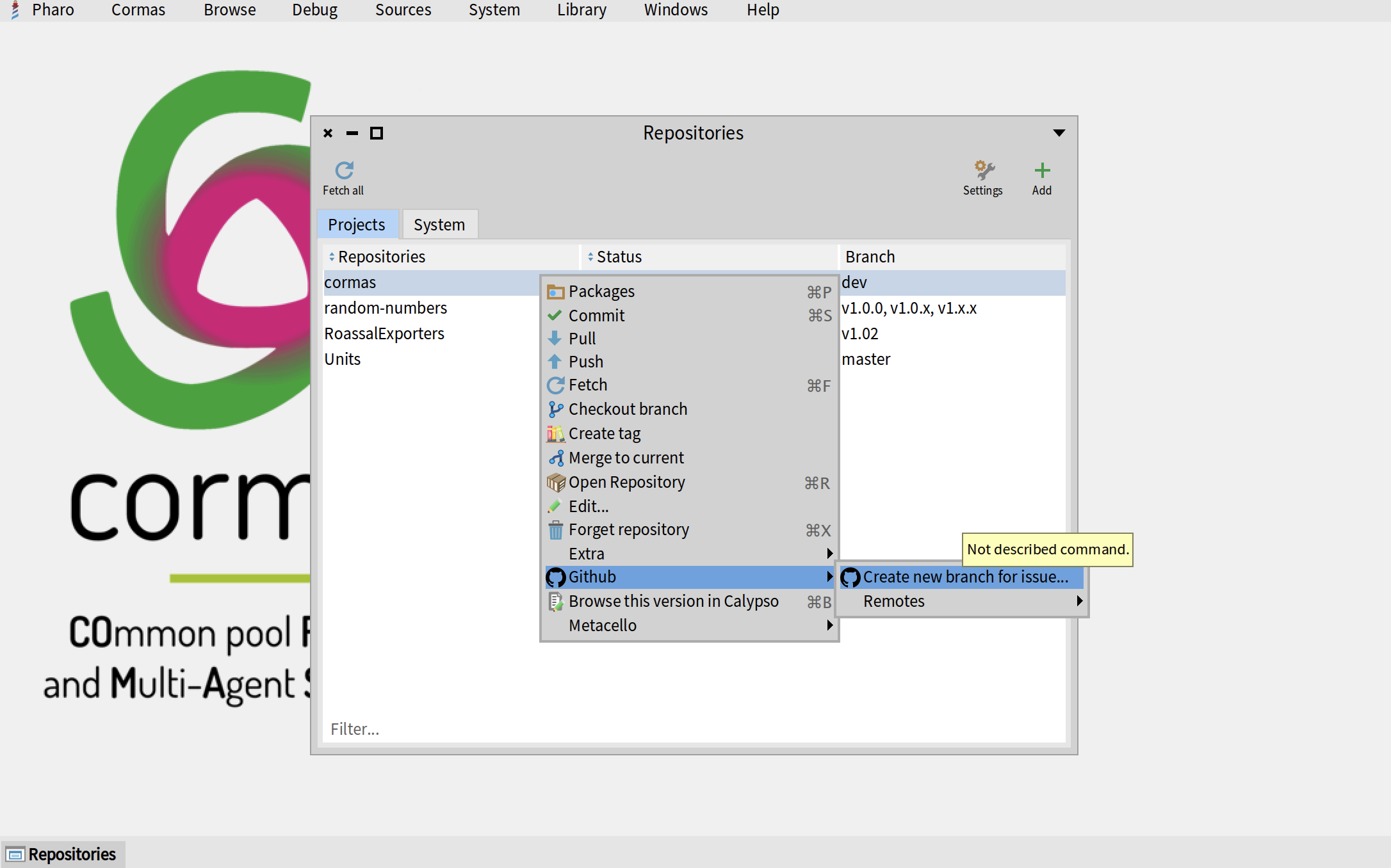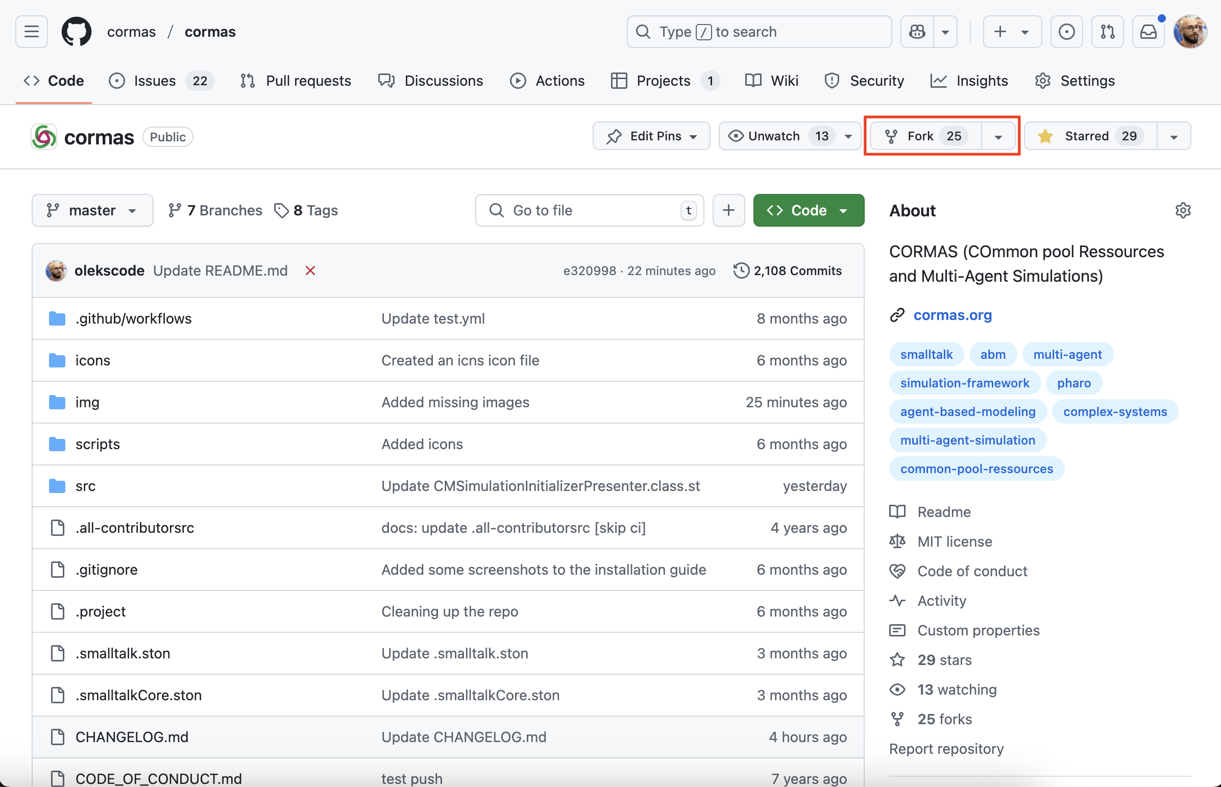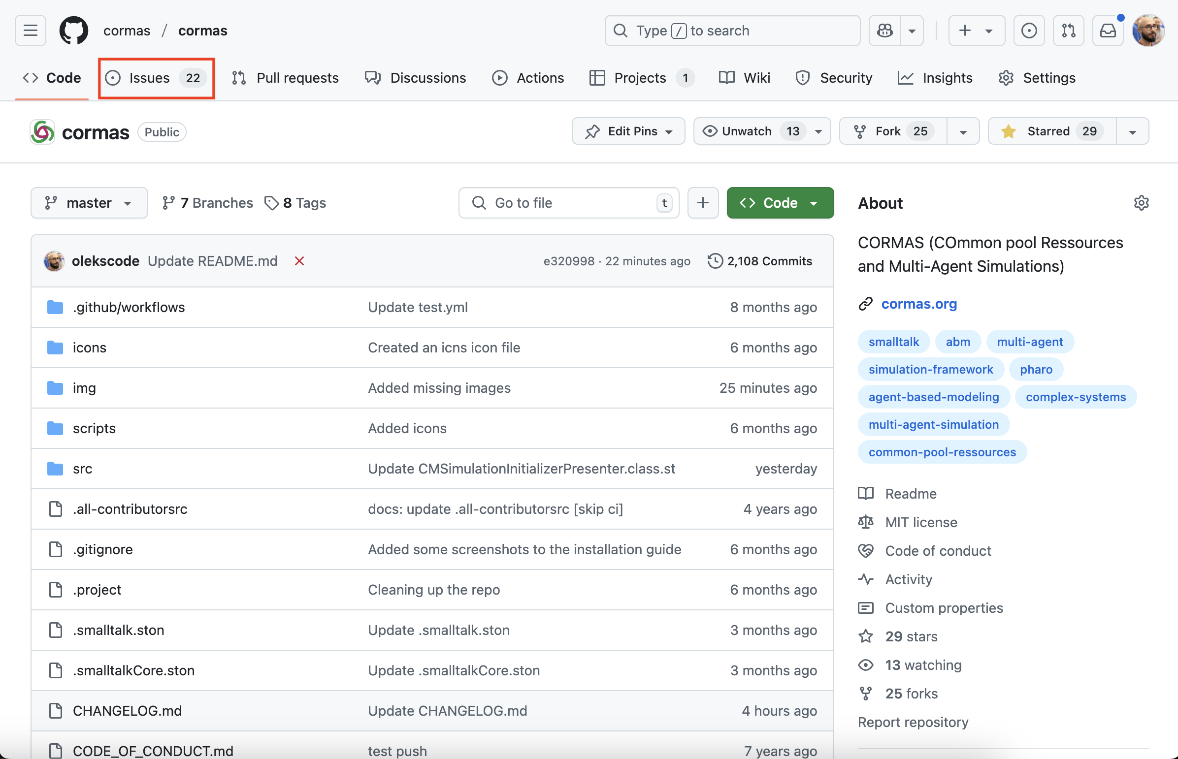 This tutorial will teach you how to contribute to Cormas by resolving issues and making pull requests to our repository on GitHub.