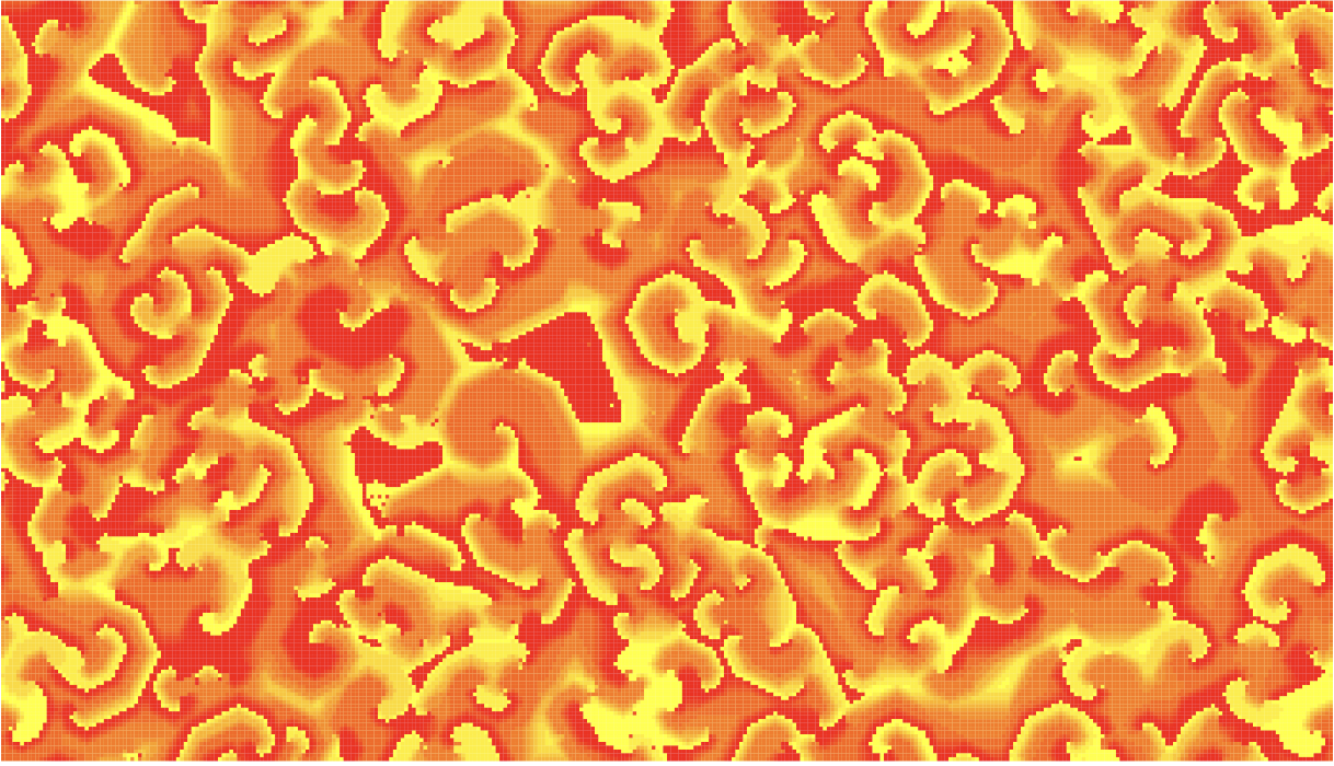 This cyclic cellular automaton is a kind of automaton rule invented by David Griffeath from University of Wisconsin – Madison.