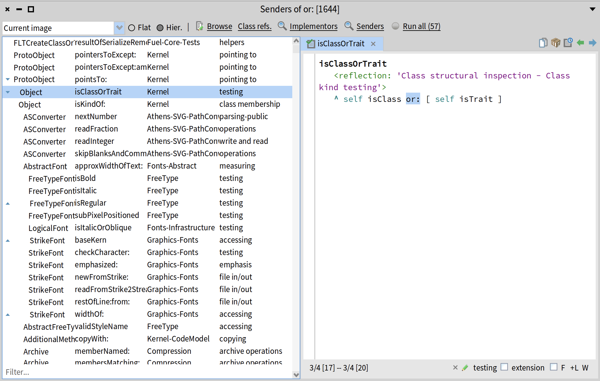 Another useful shortcut is to browse all senders of a message - all places in the source code of the whole image where a given message is sent (where one of the methods with a given name is called).