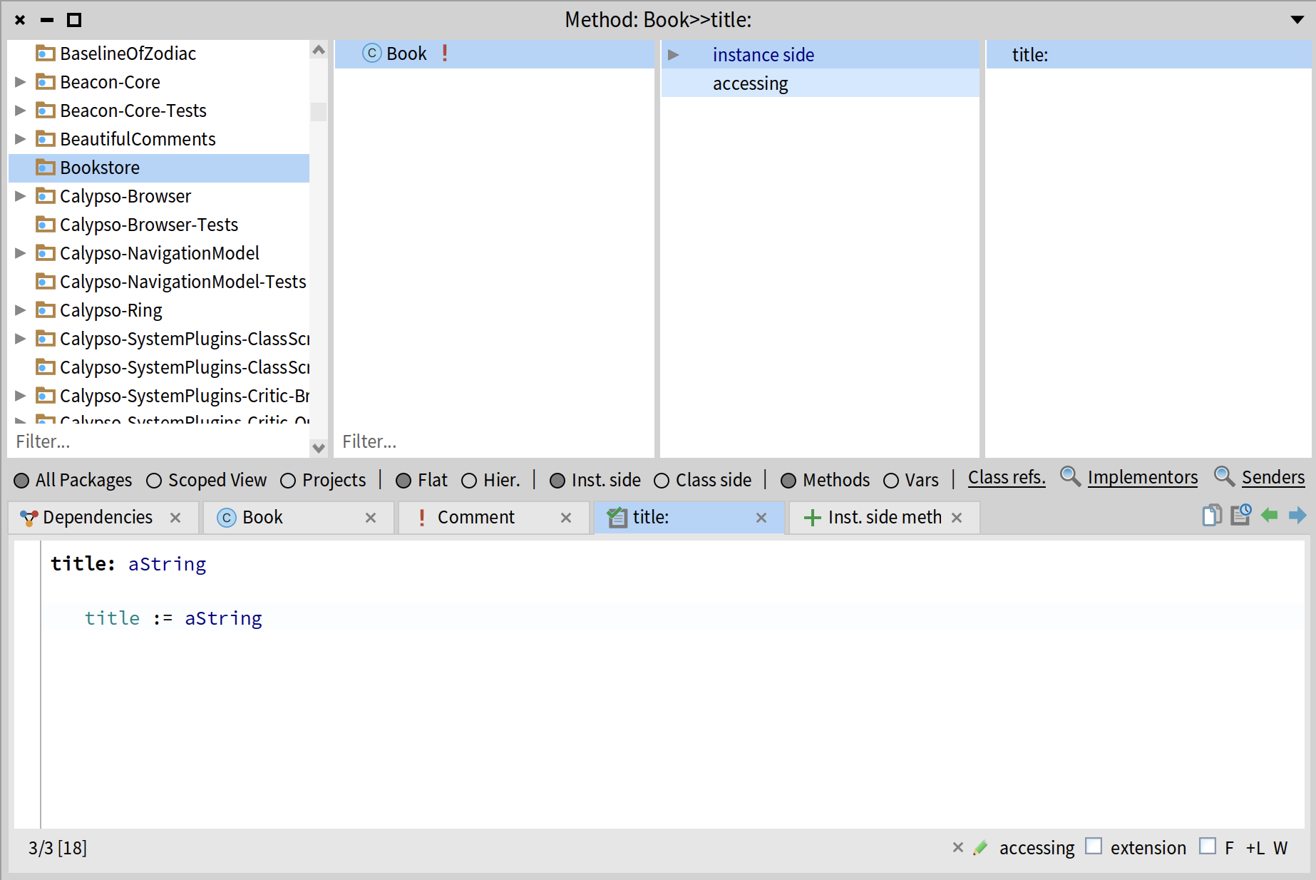 Pharo is smart, so it recognizes that my new method is an accessor and automatically classifies it into the accessing